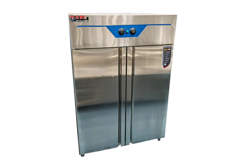 新款双门消毒柜是由电热管、循环风机为主要元器件产生以高温为消毒因子的食具消毒柜。适用范围:适用于餐饮具消毒。