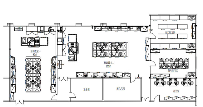 每个工作间都必须有相应的配套设施,设计原则是根据厨房人员操作动作与设备需要配置。根据厨房人员操作动作设计,要使用方便,提高使用效率。在厨房需要上下水的设备很多,关键是设置方便得当。